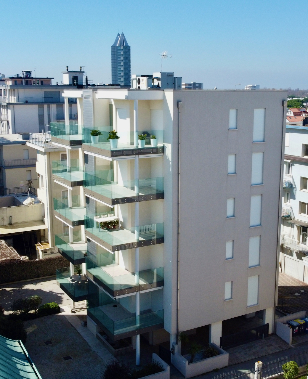 Elegante complesso residenziale composto da 10 appartamenti disposti su 6 piani. La struttura, realizzata in cemento armato, è caratterizzata da tamponamenti e divisioni interne in laterizio.